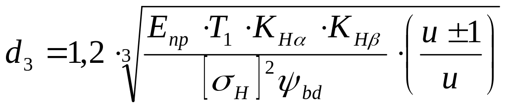 Проектный расчёт цилиндрической косозубой передачи ведем относительно делительного диаметра шестерни по формуле:
