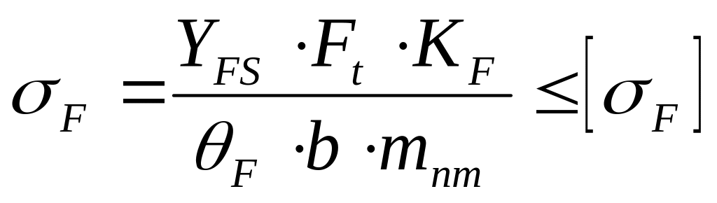 Выполняем проверочный расчёт передачи по напряжениям изгиба по формуле: