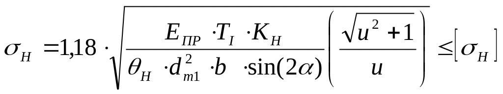 Проверочный расчёт передачи по контактным напряжениям выполняем по формуле: