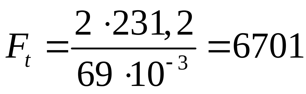 Окружное усилие на шестерне , Н определяем по формуле