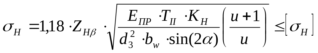 Проверочный расчёт передачи по контактным напряжениям выполняем по формуле: