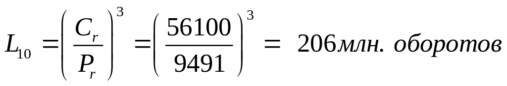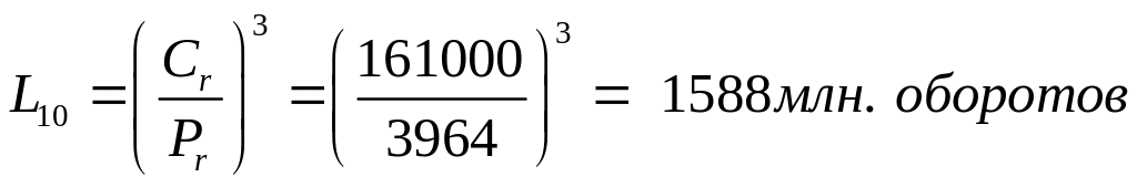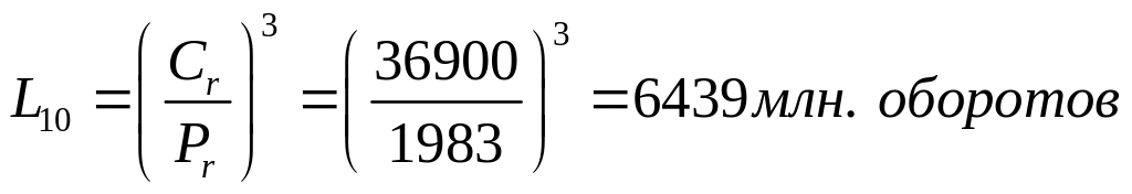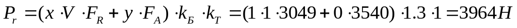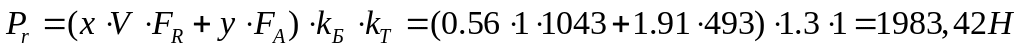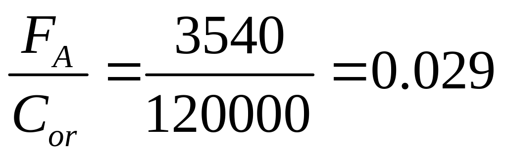Определяем значение коэффициента радиальной динамической нагрузки x=1 и коэффициента осевой динамической нагрузки y=0.