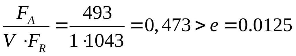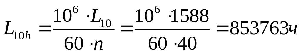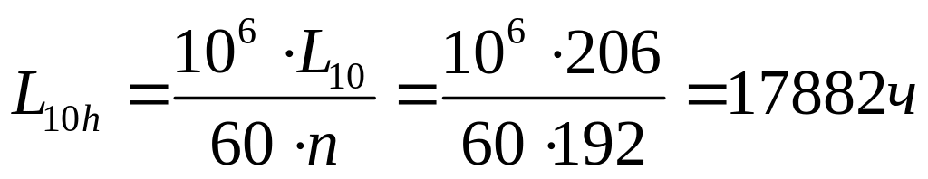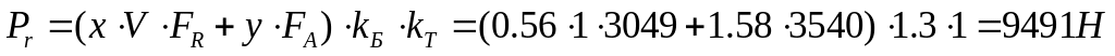 Определяем значение коэффициента радиальной динамической нагрузки x=0.56 и коэффициента осевой динамической нагрузки y=1.58.