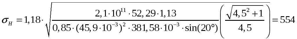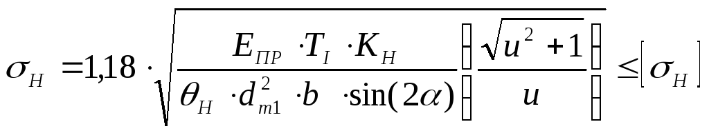 Проверочный расчёт передачи по контактным напряжениям выполняем по формуле: