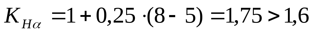Коэффициент динамической нагрузки выбирается по таблице 8.3, [2] в зависимости от степени точности зубчатых колес, твердости поверхности зубьев и окружной скорости.