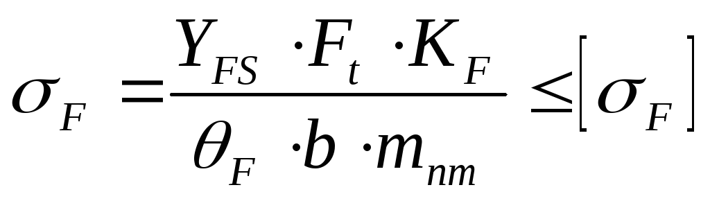 Выполняем проверочный расчёт передачи по напряжениям изгиба по формуле: