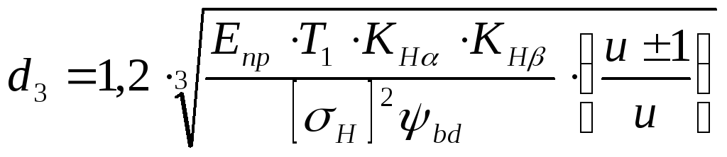 Проектный расчёт цилиндрической косозубой передачи ведем относительно делительного диаметра шестерни по формуле:
