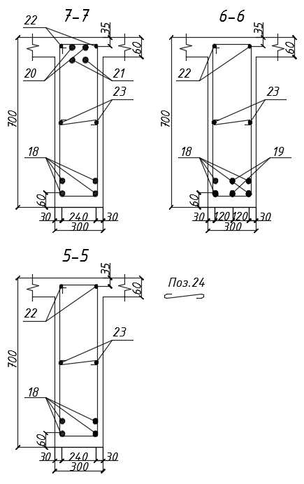 W6=W7=281,81•103/2•223,72+5•22=739,82мм>30d=30•22=660мм;