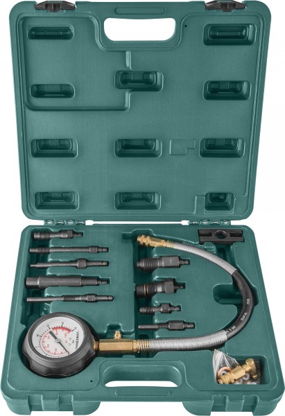 Компрессометр используется для контроля состояния деталей цилиндро-поршневой группы и ГРМ дизельных двигателей легковых автомобилей с прямым и непрямым системами впрыска. Подключение прибора осуществляется с помощью адаптеров через гнездо свечи накаливания. Изделие снабжено большим, 83 мм, гидронаполненным аналоговым манометром в обрезиненном противоударном корпусе, шкала которого градуирована от 0 до 70 кгс/см² (0-1000 PSI). Соединительный армированный шланг, длиной 355 мм, снабжен быстросъемным соединением, рассчитан на пиковое давление 300 кгс/см². Изделие применяется для обслуживания автомобилей марок: BMW, CITROEN, DIAHATSU, FIAT, FORD, ISUZU, LAND ROVER, DAF, MAZDA, MERCEDES-BENZ, MITSUBISHI, NISSAN, OPEL , PEUGEOT, RENAULT, TOYOTA, VAG, VOLVO.