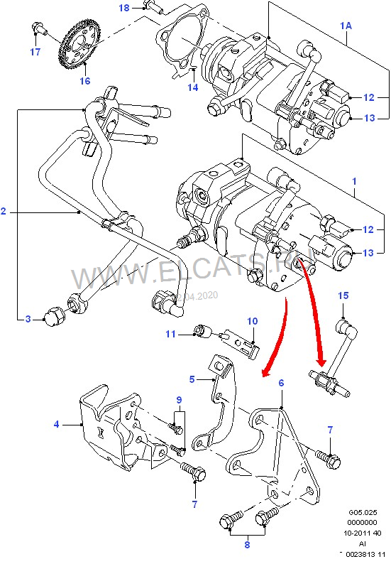 1 - Насос впрыска топлива, 2 –топливопровод, 3-специальная гайка, 4-кронштейн, 5-опора, 6-кронштейн топливного насоса, 7-болт с шестигранной головкой, 8-винт, 9-винт, 10- зажим топливопровода, 11-гайка, 12-датчик температуры топлива, 13-клапан насоса, 14- прокладка,15- диффузор,16- зведочка,17- болт, 18 –болт.