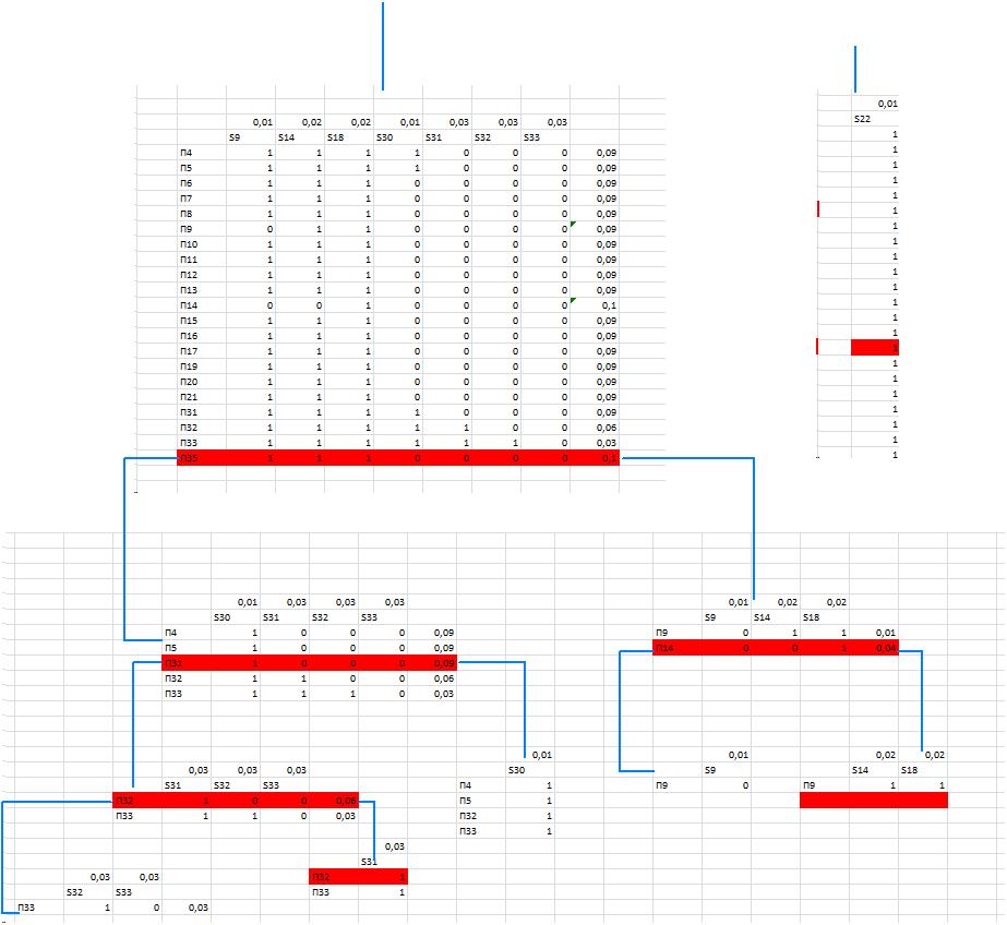 − если блок Рi имеет несколько выходов, то он заменяется таким же количеством блоков, каждый из которых имеет один выход и существенные для него входы;