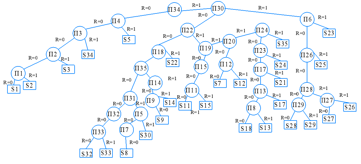 На основании полученных вероятностей и таблицы состояний строим дерево поиска отказов.