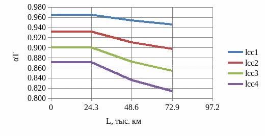 Рисунок 8.1 – Зависимость коэффициента технической готовности от пробега