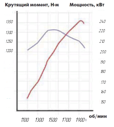 Рисунок 3.1 – График крутящего момента и выходной мощности двигателя автомобиля Dodge Ram II 5.9 TD MT