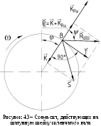 Аналитически результирующая сила RШШ (рисунок 4.3), действующая на шатунную шейку V-образного двигателя (в случае, если учитывается действие сил со стороны только одного из двух расположенных рядом на шейке шатунов) равна: