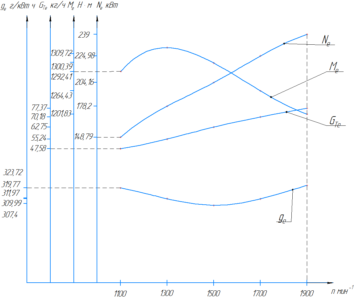 Рисунок 3.1 – Внешняя скоростная характеристика дизельного двигателя внутреннего сгорания