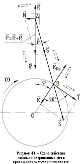 Силы инерции, действующие в КШМ, в соответствии с характером движения приведенных масс (см. рисунок 4.1) подразделяются на силы инерции поступательно движущихся масс РJ и центробежные силы инерции вращающихся масс KR.