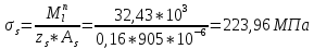 Напряжение в продольной рабочей арматуре в нормальном сечении с трещиной от соответствующей внешней нагрузки: