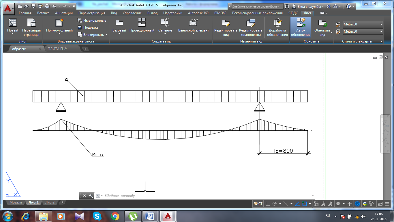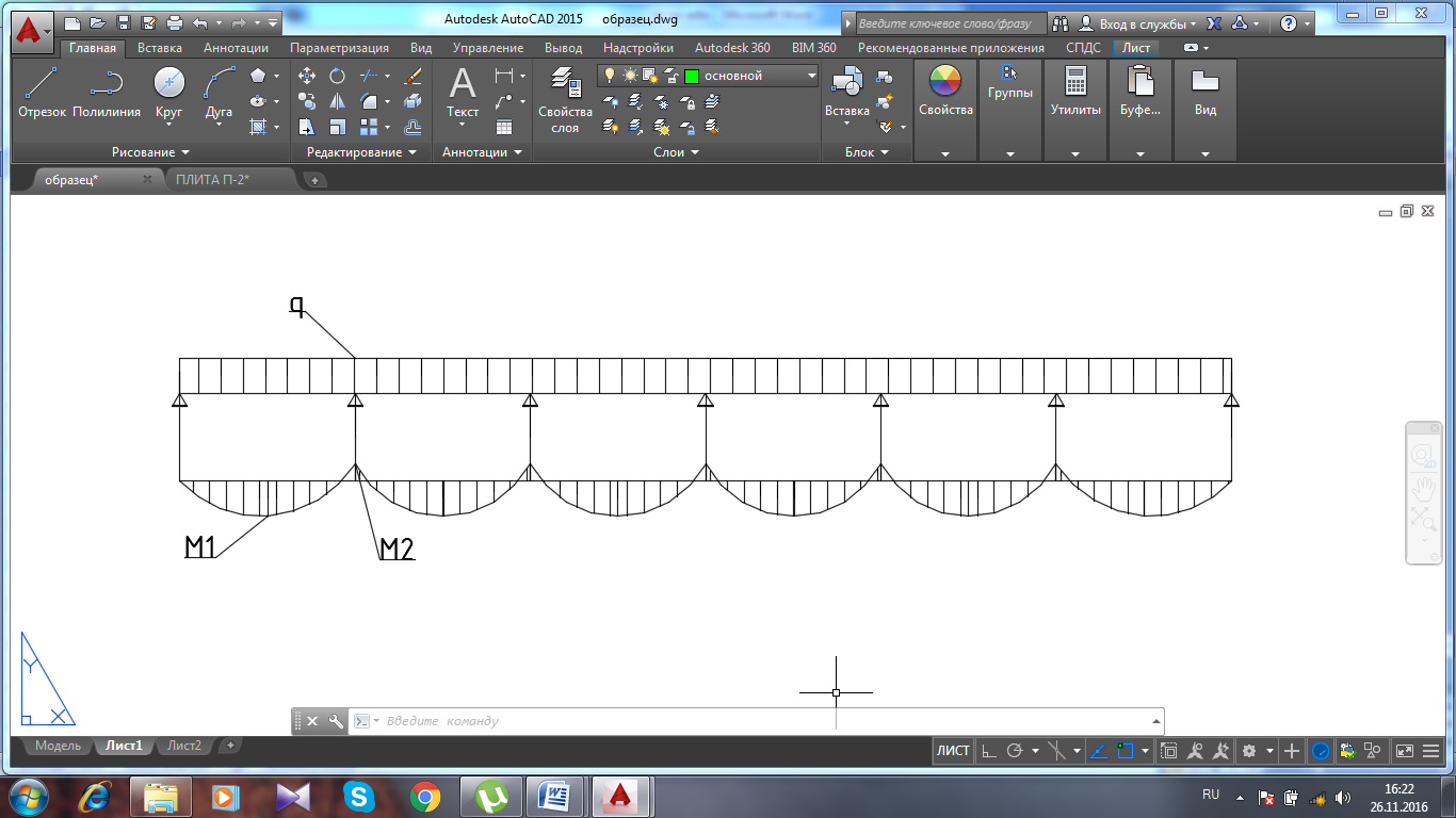 М1= ql02/11- пролётному и М2 = ql02/16 - опорному,