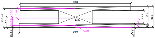 Так как условие выполняется, то граница сжатой зоны проходит в ребре. В соответствии с этим, находится высота границы сжатой зоны:
