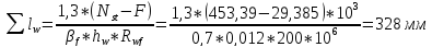 Вычисляется длина сварных швов, прикрепляющих нижние закладные детали ригеля к закладным деталям консолей колонн: