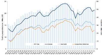 Рисунок 14. - Капитализация региональных фондовых рынков, трлн. долл.