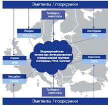 Европейский рынок в значительной мере представлен организованным рынком ценных бумаг Euronext, который обслуживается международным расчетно-клиринговым центром Euroclear. Торговля ценными бумагами осуществляется в электронной торговой системе в режиме встречного аукциона спроса и предложения в течение торговой сессии.