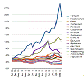 Для таких стран Европы, как Греция, Португалия, Италия возникла угроза дефолта по государственным ценным бумагам.