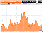 Рисунок 32. -Биржевая диаграмма акций NYSE Euronext, обращающихся на Нью-Йоркской фондовой бирже 2.3. Финансовые инструменты, обращающиеся на бирже NYSE Euronext Paris и их инвестиционная привлекательность