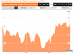 В 2013 году холдинг E*TRADE Financial Corporation получил прибыль размером 2,4 млрд. долларов США и динамика цен акций компаний, входящих в холдинг, свидетельствует о хорошем состоянии финансовой группы (см. рис. 44).