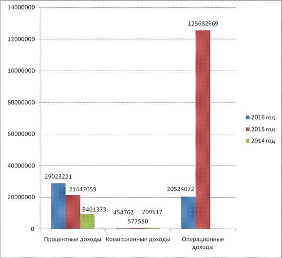 Рисунок 5. Доходы ПАО «Мособлбанк» в 2014-2016 годах