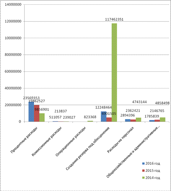 Рисунок 6. Расходы ПАО «Мособлбанк» в 2014-2016 годах.