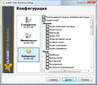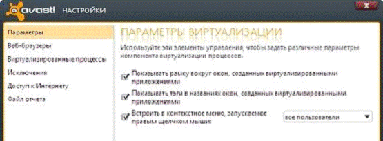 .2 Настройки программы Avast.