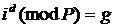 показателю d. Показатель d (дискретный логарифм числа g по модулю P при