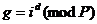 по модулю P, будет число g < P и взаимно простое с P, принадлежащее