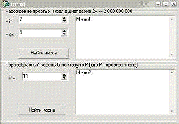 SpinEdit 1,2,3- для ввода чисел, Memo 1,2 - для отображения результатов и