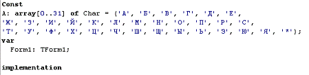 Процедура дешифрования реализована в обработчике события onClick кнопки Button2.
