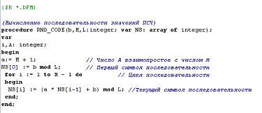 реализации алгоритма использовала три личных метода. Процедура RND_CODE