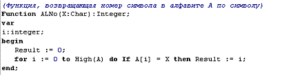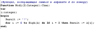 алфавите. Функция NoAL возвращает символ, соответствующий номеру символа в