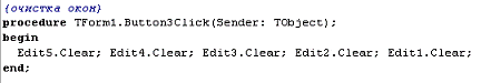 очистки полей реализована в обработчике события onClick кнопки Button3.