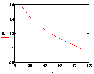 .3 Построить зависимость импульсного сопротивления контура заземления подстанции от тока молнии.