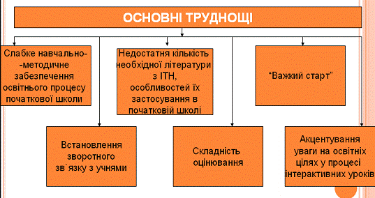 . Недостатня кількість педагогічної, психологічної, методичної літератури з інтерактивних технологій навчання, особливостей їх застосування в початковій школі.