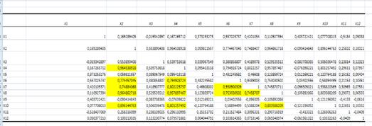 Построим матрицу парных коэффициентов корреляции для всех 12 факторов.