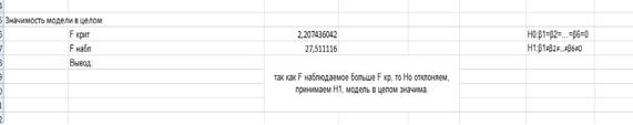 В ходе проведения исследования на значимость модели в целом был