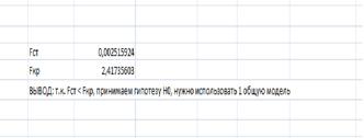 По результатам теста получили Fст < Fкр, гипотеза Н0 принимается, следовательно нужно использовать одну общую модель.
