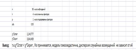 возмущений не зависит от Х4, модель гомоскедастична.