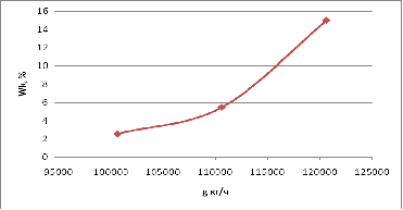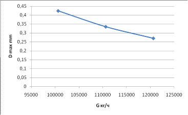 Рисунок 1 - Зависимость диаметра капель от массового расхода нефти