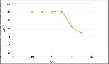 Рисунок 8 - Зависимость конечной обводнённости нефти от температуры