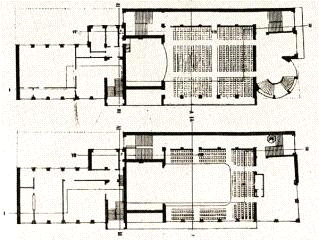 К. Мельников, например, решал здание клуба единой крупной формой, создавая легко запоминающуюся композицию (как правило, симметричную). Последовательные сторонники функционального метода конструктивизма предпочитали использовать при проектировании клубов прием павильонного объемно-пространственного построения без обязательного выделения главного композиционного акцента (проекты Весниных).