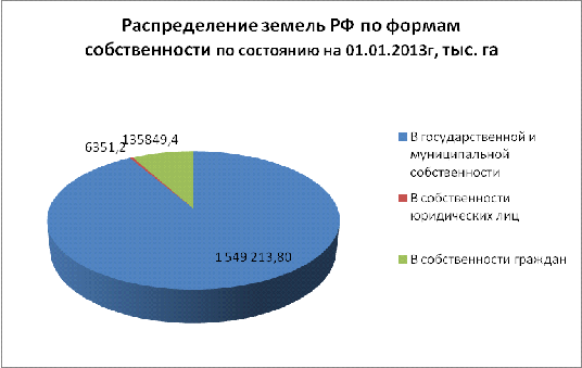 В собственности государства находится основная часть земельных ресурсов РФ - 92, 4%, что на порядок выше, чем у граждан (7,3%) и юридических лиц (0,3%) [15].